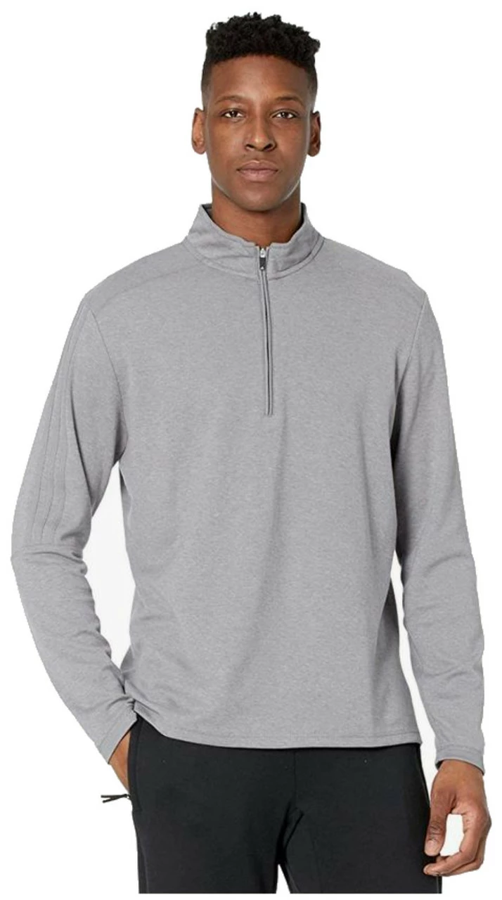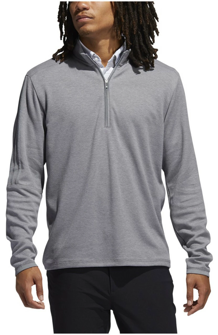 Adidas Men’s 3-Stripes Quarter Zip Layering Golf Pullover – Crew Grey Melange, GM0022. Feel great on the course and look good in the clubhouse. This adidas golf pullover has a doubleknit design that hides a sweat-wicking, mesh interior under a soft, casual exterior. Brisk days on the course never felt this good. Recycled materials are one step towards reducing plastic waste.