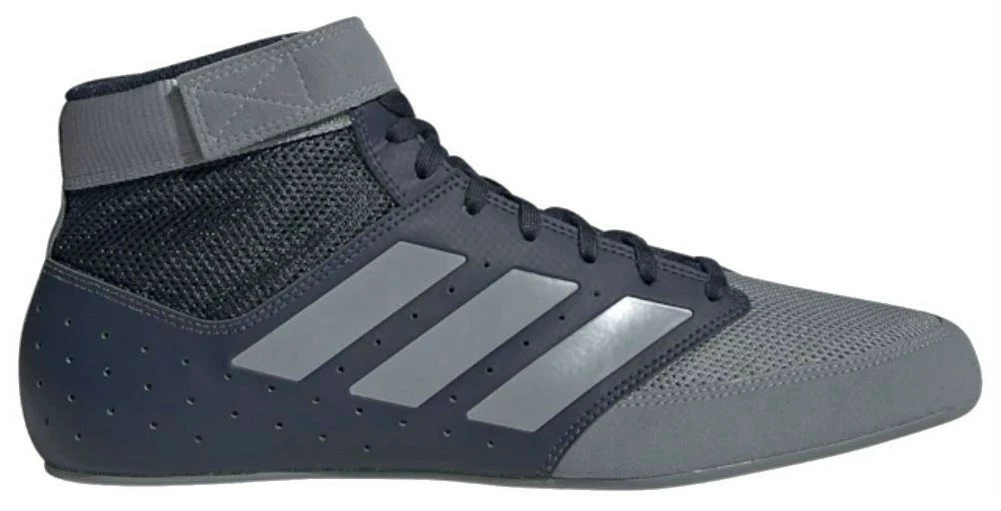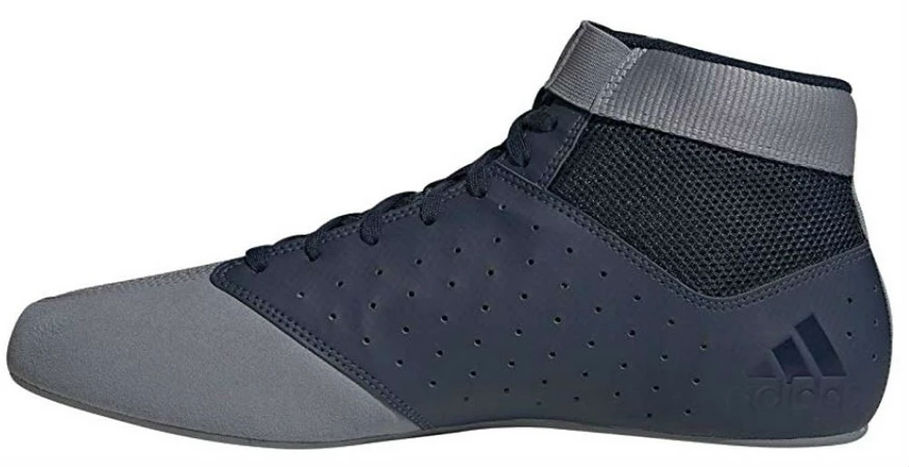Adidas Mat Hog 2.0 gathers every essential feature a wrestler would expect from their footwear gear. Lightweight,breathability, flexibility, and durability in a modern looking and simply executed shoe. The open upper mesh is a breathable material that provides comfort and stability. Synthetic suede in the toe cap and medial forefoot is abrasion resistant, providing great contact to the canvas without compromising durability. Full-length adiWEAR outsole in the Mat Hog 2.0 provides consistent floor contact and durability. The drive zone in the forefoot brings an agile grip. Color: Navy/Gray. F99820
