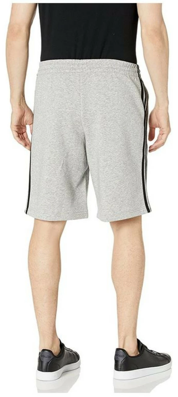Adidas Men’s Standard Essentials Fleece 3-Stripes Shorts Heather Gray/Black, H20851. Made from 53% cotton, 36% recycled polyester, 11% viscose fleece Post-workout, you’re going to want to throw something comfy on, and these shorts inspired by classic Adidas gear fit the bill. Or hey, maybe it’s Sunday morning and you just want to chill in the soft fleece and stretchy waistband that feel like your favorite pair of sweats. You do you. Featuring a drawcord on elastic waist and side slip in pockets.