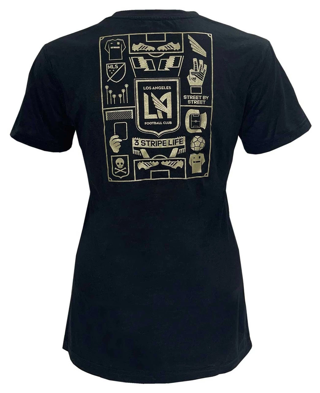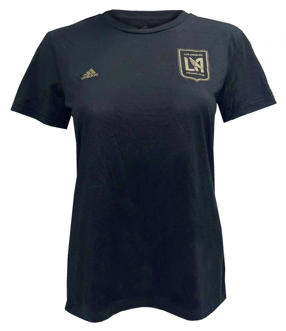 Adidas Women’s LA Football Club MLS Major League Soccer Tee. Extra-soft polyester tee for avid MLS fan. Represent California soccer like the loyal fan you are. Lightweight soft feel, made from 100% polyester. Metallic Adidas and Team logo screen printed graphics on front. Officially licensed by the MLS. LAFootball1