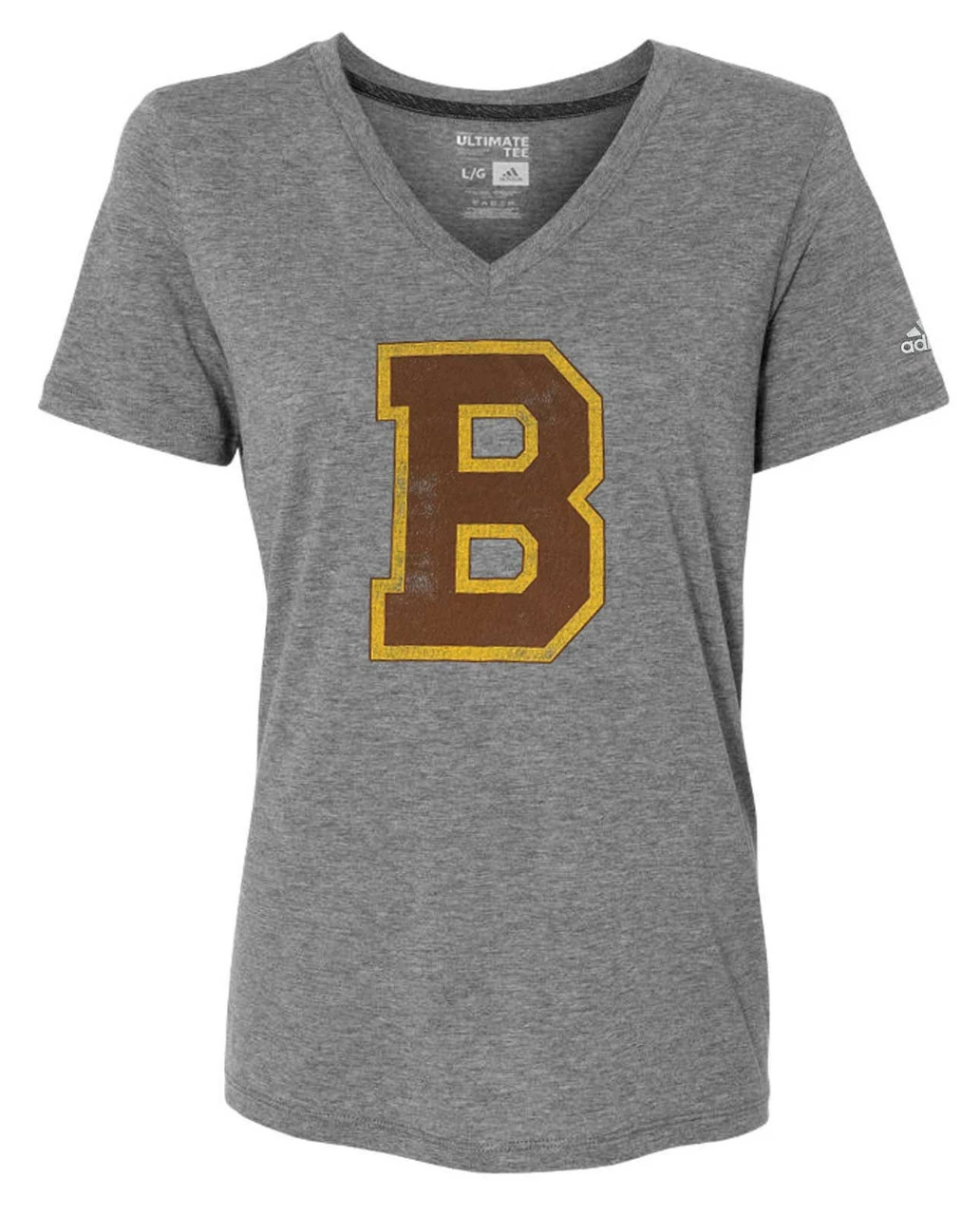 Adidas Women’s Boston Bruins NHL Hockey Fan Tee.. Receive 1 flattering V-neck. Made of 100% Polyester. Team logos screen printed graphic on front, blank back. Officially licensed by the NHL. Bruins3