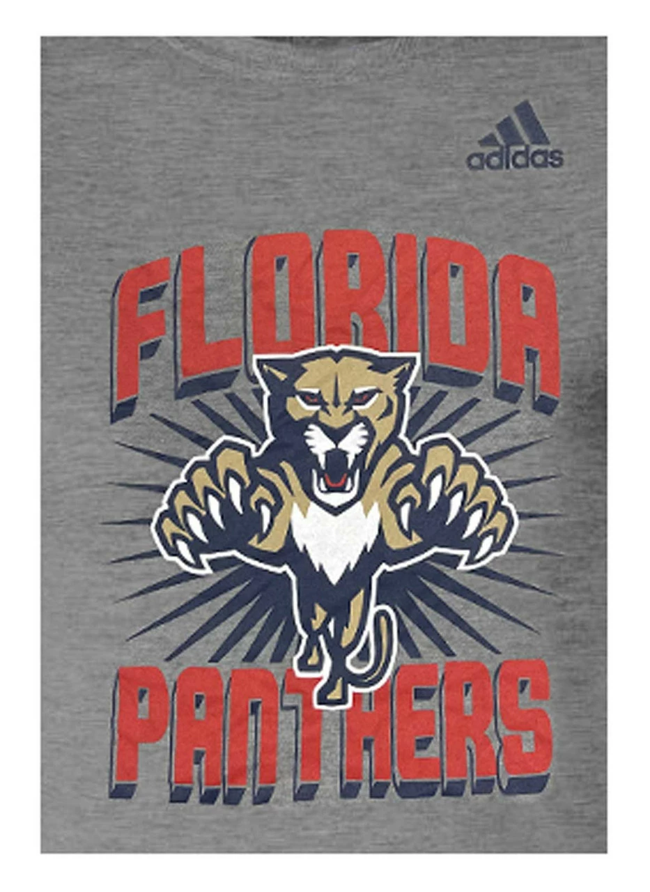 Adidas Women’s Florida Panthers NHL Hockey Short-sleeve Tee. Flattering women’s cut crew neck hockey tee that’s 50% Polyester, 50% Cotton blend. Team logo screen printed graphic on front of tee blank back. Officially licensed by the NHL. Panthers6