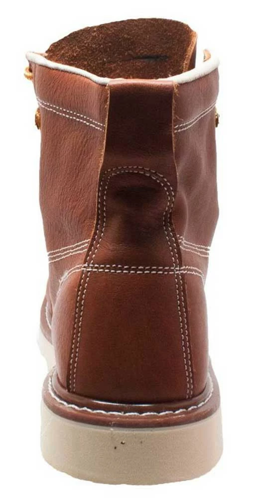 This boot features full grain leather and moisture absorbing quarter lining. The outsole is made of oil resistant rubber and the insole is cushioned making this boot both durable and comfortable. Sturdy Goodyear Welt construction. Moc Toe design. Color: Brown Tan. 9238L