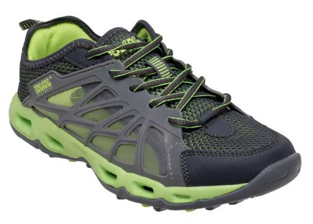 This light weight breathable mesh shoe is built with a special water dissipating outsole and made to dry quickly, allowing it to transition from water to land effortlessly. It is equipped with a laces for easy wear and has an EVA insole for walking comfort. The rubber outsole provides durability and slip resistance. Colors: Orange/Navy and Gray/Green. 1009