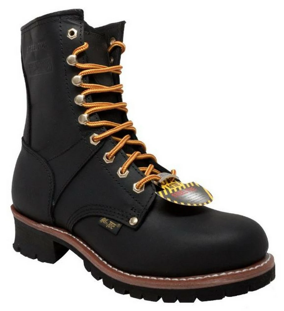 This 9 inch Crazy Horse black full grain leather logger boot with steel toe has rubber outsole for dependable traction and goodyear welt construction. This purposeful, yet comfortable logger footwear will help you get through a tough?s day work! Color: Black. 1428