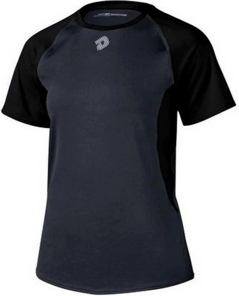 DeMarini Women’s Teamwear Performance Short Sleeve Shirt, Grey/Black. WTC9701BL. The comfort-fit design of our team shirt is built to be worn under your game jersey or for workouts. These performance pieces are perfectly fitted, skimming the body without being tight or baggy. Body-mapping mesh inserts provide breathability, and the body fabric stretches in all directions to allow a full range of motion. The protection inhibits growth, protecting against stains and odor, while the moisture management system wicks moisture away from the body to keep players dry and comfortable. 91% polyester/9% spandex. WTC9701BL