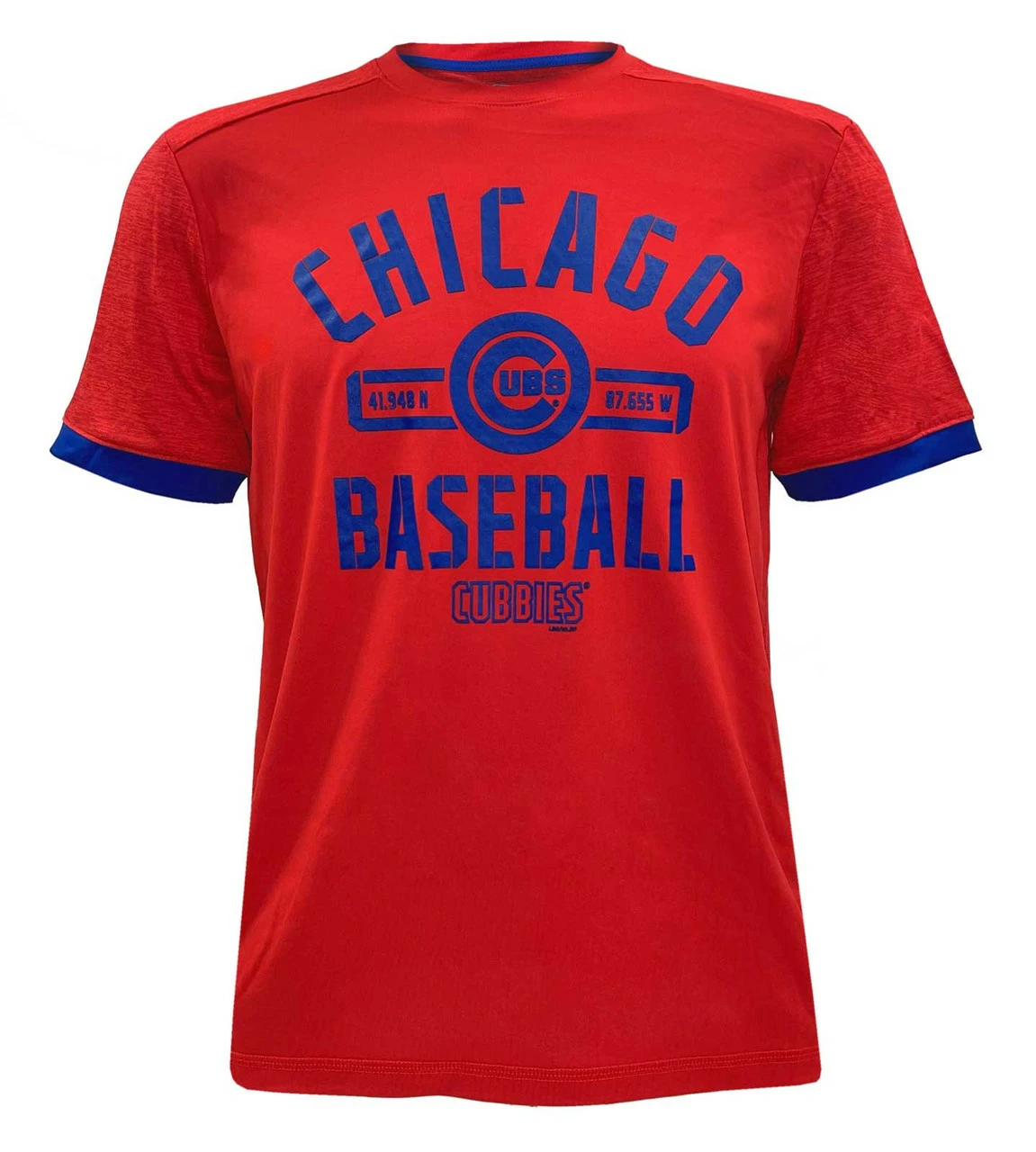 Fanatics Men’s MLB Chicago Cubs Defender Arc Short Sleeve Crew Neck T-Shirt, Red, TACA-A035-EJ-B91. This incredibly comfortable short sleeve poly fabric tee is perfect for those days at the ballpark, watching the game at home or showing off team pride on the go! Cheer on the Cubs and look great doing it! Solid red tee with heathered red sleeves and back with blue accents and a blue logo. Featuring the classic Cubs logo and Chicago Baseball in big, bold letters. Made from 100% Polyester. Officially Licensed by MLB. TACA-A035-EJ-B91