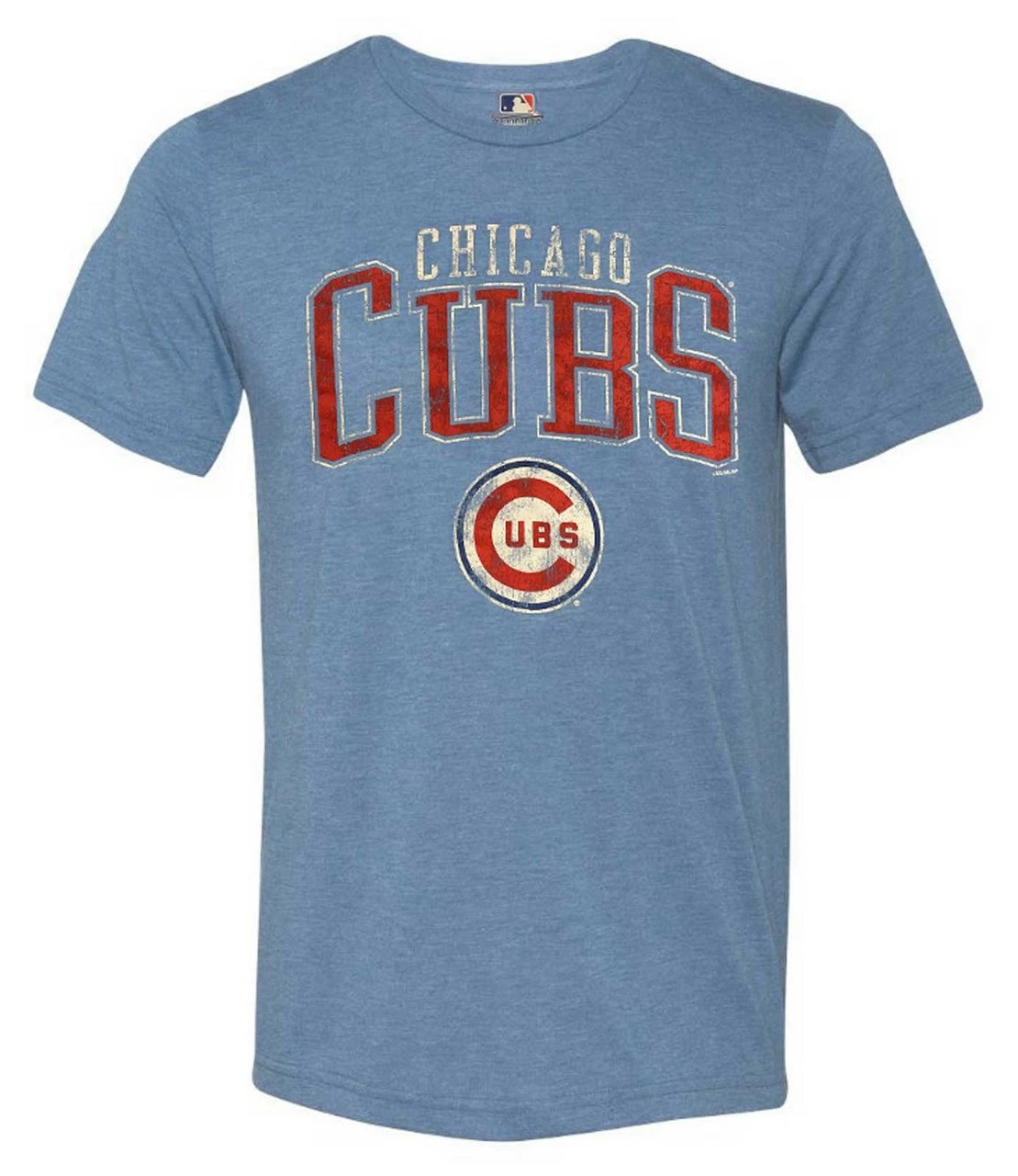 Fanatics Men’s MLB Chicago Cubs Vintage Arch Short Sleeve Crew Neck T-Shirt, Blue, TACQ-292B-CGC-B9C. This vintage style shirt is perfect way to show off your team pride, cheer on the Cubs and look great doing it! Coastal Blue shirt with the Cubs logo and team name screen printed on the front. Made from 50% cotton and 50% polyester. Officially Licensed by MLB. TACQ-292B-CGC-B9C