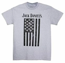 Jack Daniel’s No.7 Fine Old Whiskey Worn Logo Crew Neck T-Shirt – Gray, 15261489JD-79. Officially licensed Jack Daniel’s Monochrome American Flag T-Shirt. This grey “Jack Daniel’s” t-shirt is made from cotton and features a “Jack Daniel’s” Monochrome American Flag design on the front. Made from 90% cotton, 10% polyester