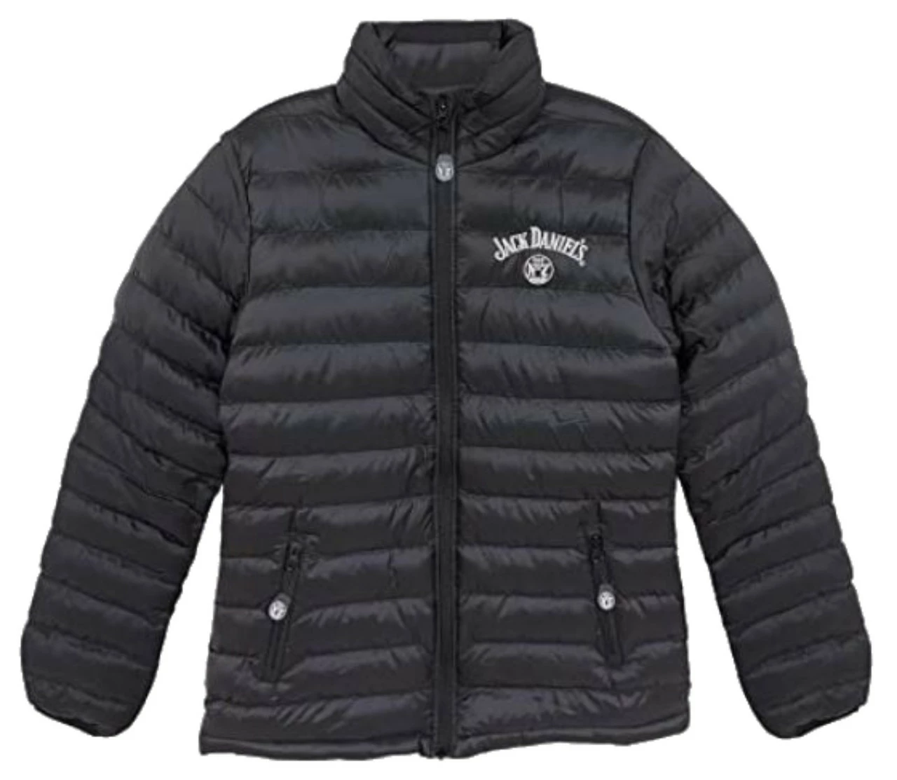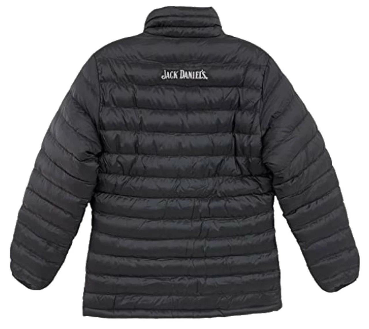 Jack Daniel’s Old No.7 Brand Tennessee Whiskey Logo Puffer Jacket – Black, 15241091JD-89. Officially licensed Jack Daniels Old No.7 Brand Tennessee Whiskey Puffer Jacket. This black “Jack Daniels” Puffer Jacket is made from polyester and features the classic “Jack Daniels Old No.7 Brand Tennessee Whiskey” logo on the front and on the back. Made from 100% polyester