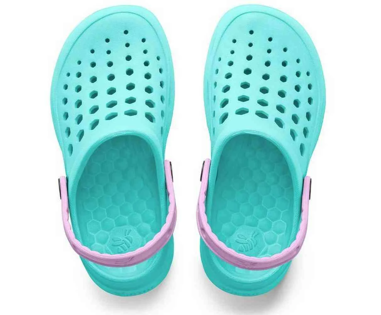 joybees® Kids Active Clog – Island Aqua/Lavender, UKCLG.IAL. Independent kids who go everywhere and get into everything choose the Active Clog for every activity. They’re durable, comfortable, and a quick-clean after a long day of play. Lightweight sandal that won’t stink wear after wear. Easy to clean, after a long day of play, rinse clean with cool, soapy water and a gentle scrub.