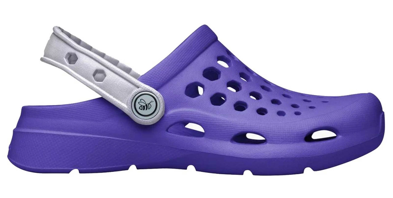 joybees® Kids Active Clog – Violet/Silver, UKCLG.VLS. Independent kids who go everywhere and get into everything choose the Active Clog for every activity. They’re durable, comfortable, and a quick-clean after a long day of play. Lightweight sandal that won’t stink wear after wear. Easy to clean, after a long day of play, rinse clean with cool, soapy water and a gentle scrub.