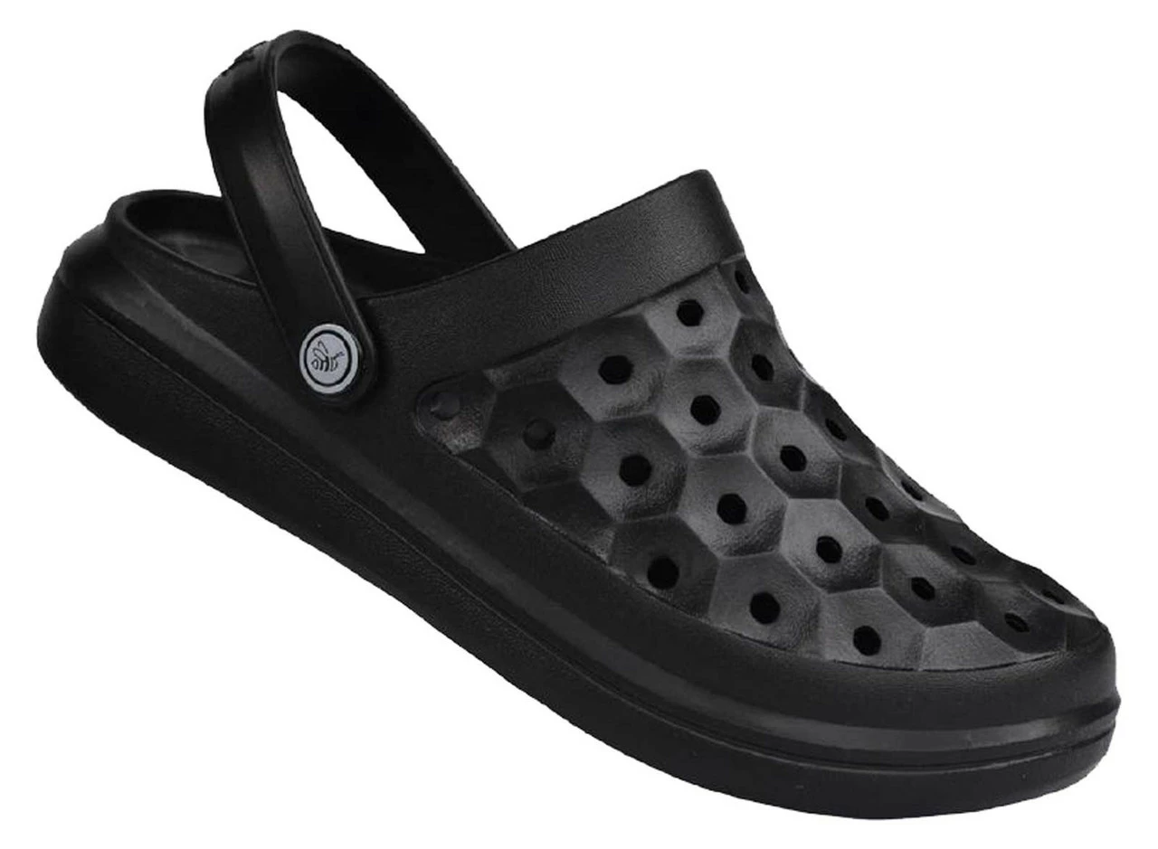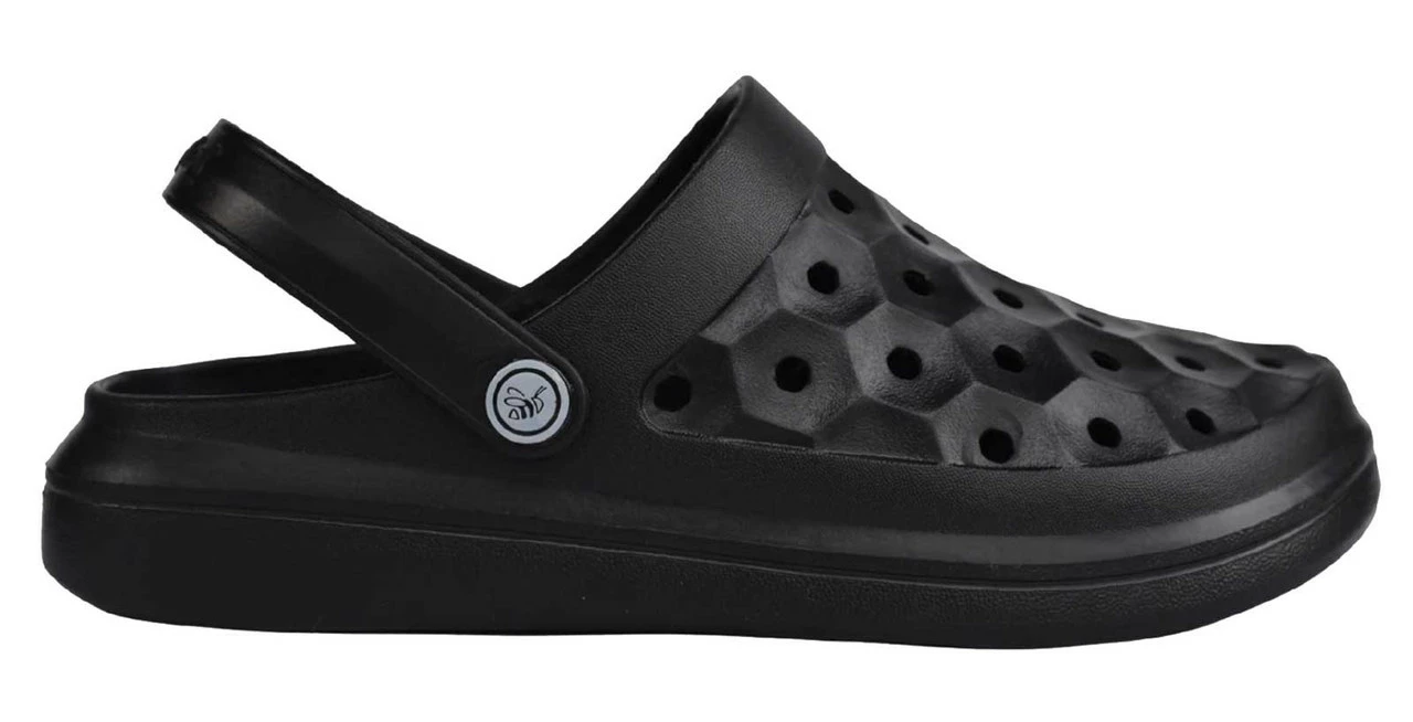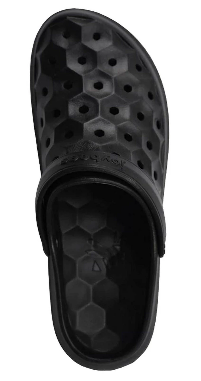 joybees® Varsity Clog – Black, UAVCG.BLK. The athletic shoe inspired design of the Varsity Clog is ready-to-go. Sink into the softness of our EVA honeycomb footbed and outsole while you enjoy any fun-filled day. Lightweight sandal with grip traction. Easy to clean, after a long day of play, rinse clean with cool, soapy water and a gentle scrub.