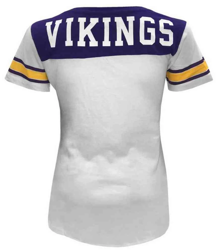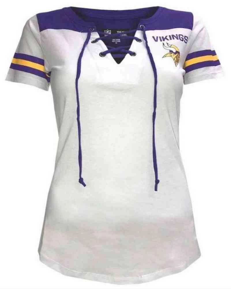 Ladies, get ready for the Minnesota Vikings season with this Women’s Lace-up Tee from New Era. Add this soft and comfortable short sleeve t-shirt to your collection and you’ll always be ready to support your Minnesota Vikings. This t-shirt made by New Era features stand out and a draw string lace up that is sure to show everyone that your devotion runs deep! Made of 100% Cotton. Officially Licensed by NFL. Color: Purple/White/Gold. 12046380