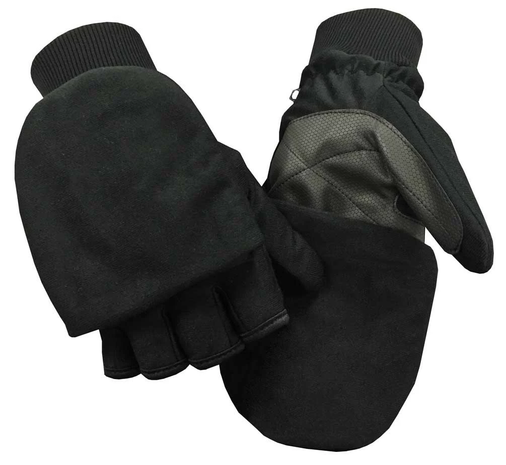 Northstar Unisex Waterproof Thinsulate Flip Top Convertible Gloves, Black. 503BK. U.S. family owned business since 1977 whose mission is to provide top quality products to companies and individuals & provide a service to the trapper and hide collectors by paying them fair market value and receiving prompt payment for their goods. Rugged and durable are the two common words associated with our industry leading work gloves. Fleece Mitts with Flip Top Mitten to expose a fingerless glove. Black stretch fleece back. Textured PU palm reinforcement provides firm grip. 40 gram 3M Thinsulate insulation technology which traps and holds body heat while allowing moisture to escape. Full sock lining and knit wrist. Flip top attaches with Velcro to glove back when open. Color: Black. 503BK