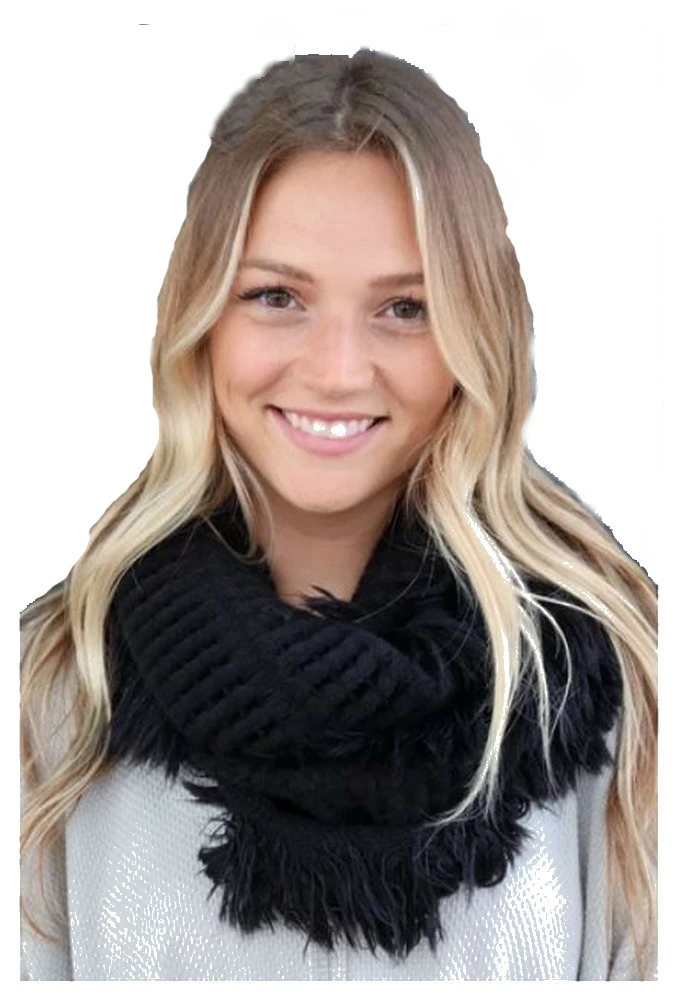 This highly detailed infinity scarf in Black is Instant Panache to accessorize almost any outfit. Panache is a wholesale fashion brand that is 100% female owned, located in Minneapolis, MN. This attractive acrylic scarf is one large infinity circle and features a small fringe along the edges. Look fashionable while adding that additional layer of warmth during 3 of the 4 seasons. Measures: 30″ x 11″ and 100% Acrylic. One size fits most. Color: Black. S-14