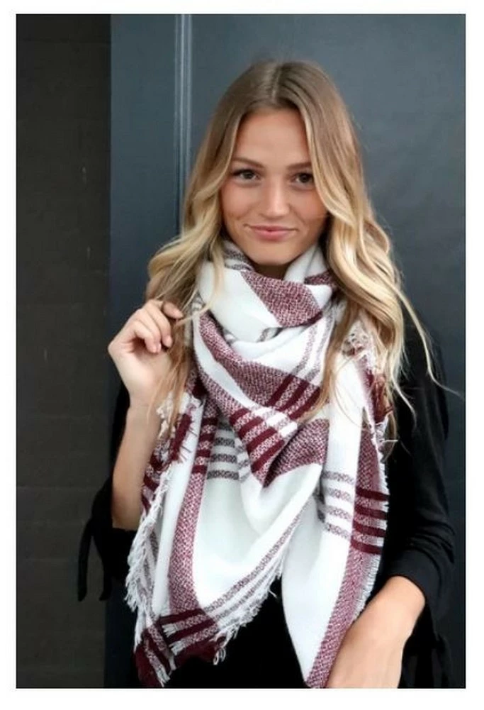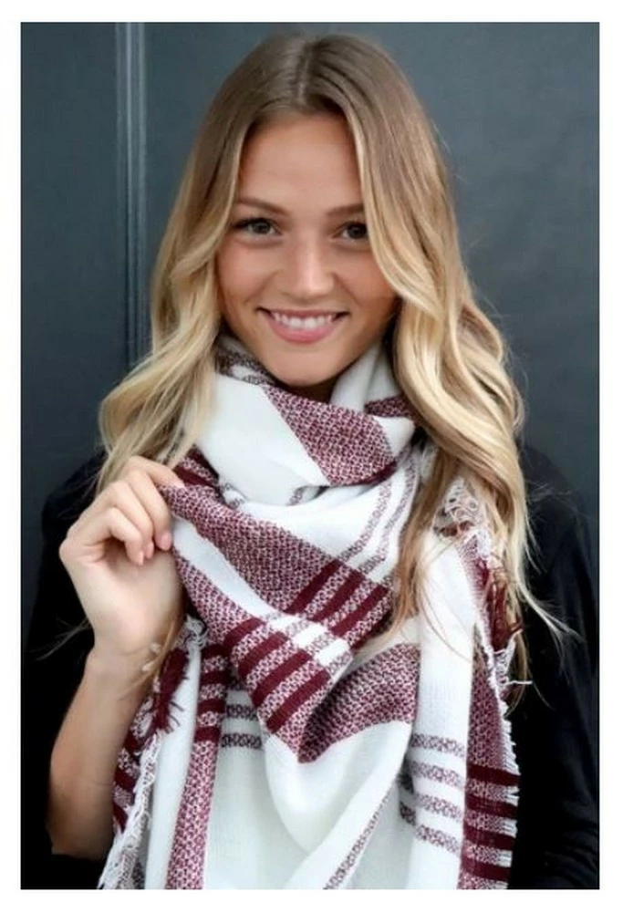 This Maroon Striped Scarf is Instant Panache to accessorize almost any outfit. Panache is a wholesale fashion brand that is 100% female owned, located in Minneapolis, MN. This attractive acrylic scarf is long and wide and features fringe along the edges. Look fashionable while adding that additional layer of warmth during 3 of the 4 seasons. 100% Acrylic. One size fits most. Color: White/Maroon. S-67