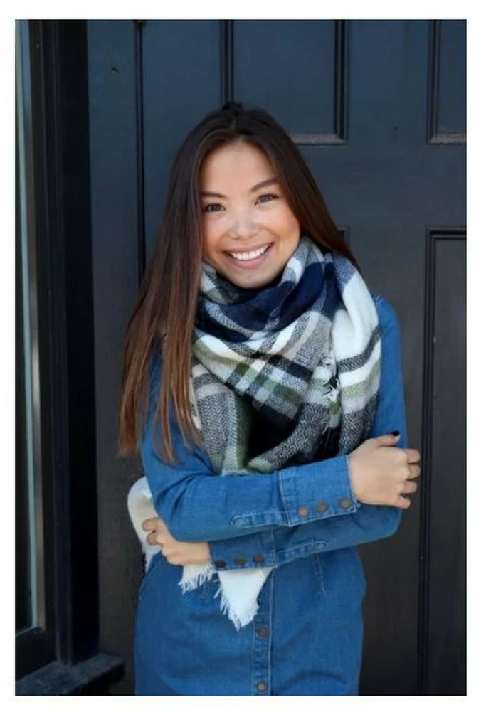 This Navy Striped Scarf is Instant Panache to accessorize almost any outfit. Panache is a wholesale fashion brand that is 100% female owned, located in Minneapolis, MN. This attractive acrylic scarf is long and wide and features fringe along the edges. Look fashionable while adding that additional layer of warmth during 3 of the 4 seasons. 100% Acrylic. One size fits most. Color: White/Navy/Green/Black. S-68