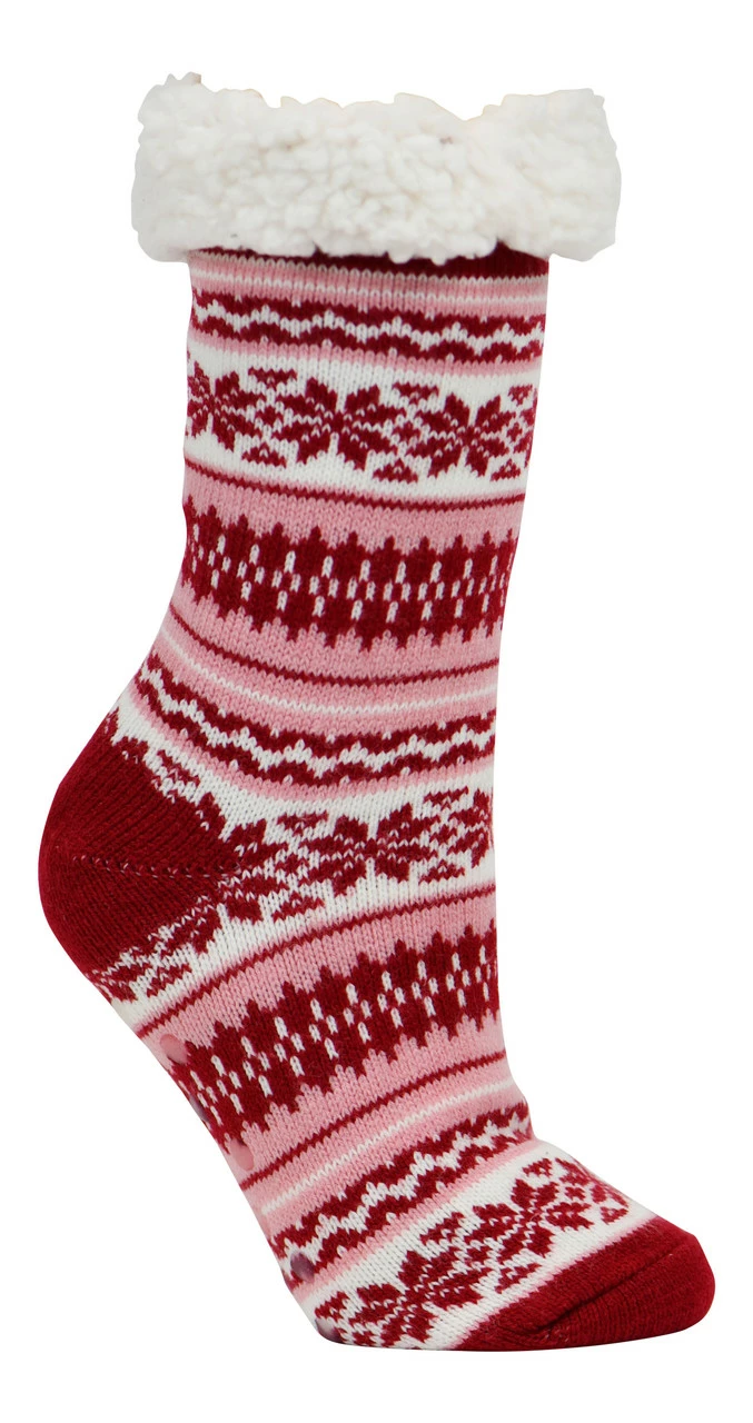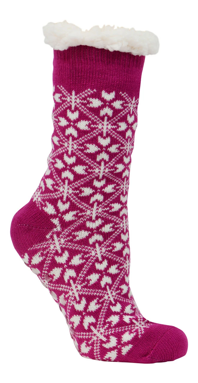 Women’s Polar Heat? Acrylic Thermal Socks, 4357. So comfy and warm, interior is made from 100% polyester. Super soft, knitted outer shell is made from 68% polyester, 31% acrylic and 1% rubber. Anti-skid to prevent slipping. Thermal comfort and fully insulated. Sherpa imitation lining. Fits women’s shoe sizes 4-10. 1 pair pack. Mid-crew height. Comes in 7 different colors: Red, Black, Fuchsia, Ivory Plum, Charcoal, Gray or Navy. These adorable socks are perfect for lounging around the house this winter.
