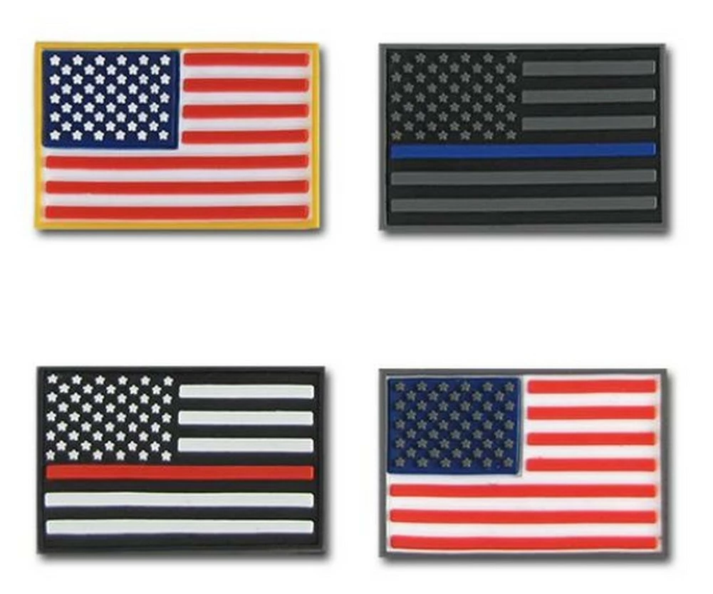 RAPDOM’s collection of injection-molded rubber patches are considered to be extremely durable and progressive. They will not peel like traditional embroidered patches and have a very modern professional appearance. The raised 3-D layered effect shows the smallest details and are pre-sewn with hook & loop backing. Lifetime warranty. Available in 4, 4-Pack USA Flag Designs. T96