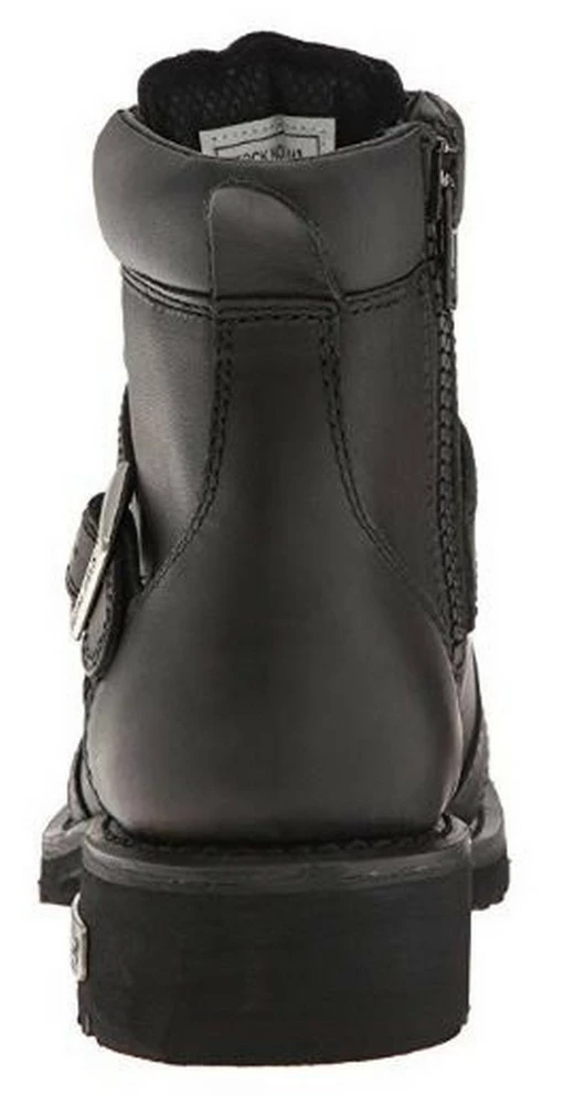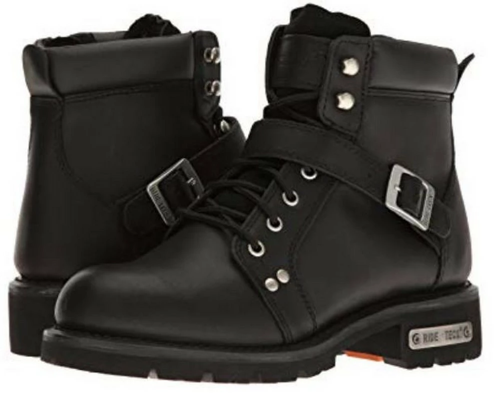This 6 inch black biker boot is built for comfort, durability, and traction. Extra heavy duty traction sole for added protection and style. This boot has goodyear welt construction and also features top quality full grain oil leather, lace up design with buckle strap, and YKK zipper. Color: Black. 9143