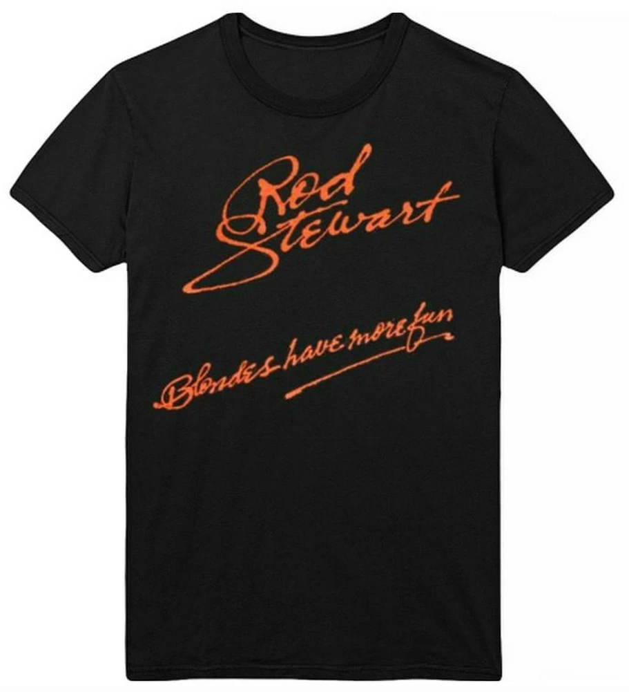 This Rod Stewart tee from Bravado From the Blondes have more fun tour. Tee features Rod’s signature and “Blondes have more fun” screenprinted across the front. A classic design in black and writing in contrasting orange. This tee is perfect for any Rod Stewart fan! Made Of: 100% Cotton. Officially licensed merchandise. Color: Black/Orange. 19661005