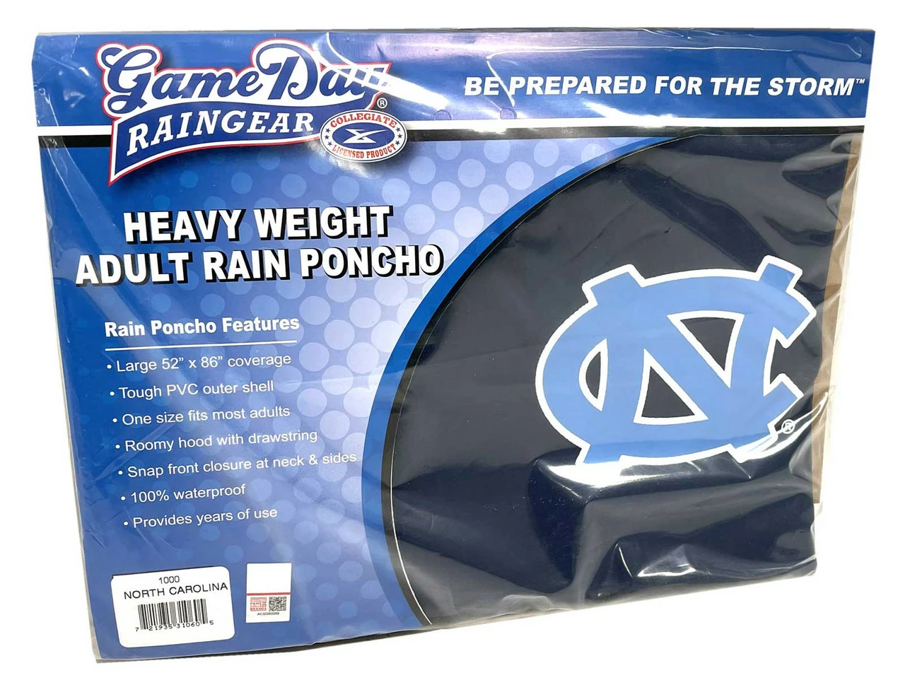 Storm Duds North Carolina Tar Heels Heavy Weight Adult Adjustable Hood Rain Poncho – Blue – One Size, 1000-03-UNC. Always be ready for the rain with this heavy weight rain poncho! This roomy poncho features an adjustable hood, snap front closures with side snaps and offers 52” x 86” coverage. Tough 18mm PVC makes it extremely durable, providing years of use. Featuring the North Carolina Tar Heels logo imprint. Don’t get caught in the rain without one! 1000-03-UNC