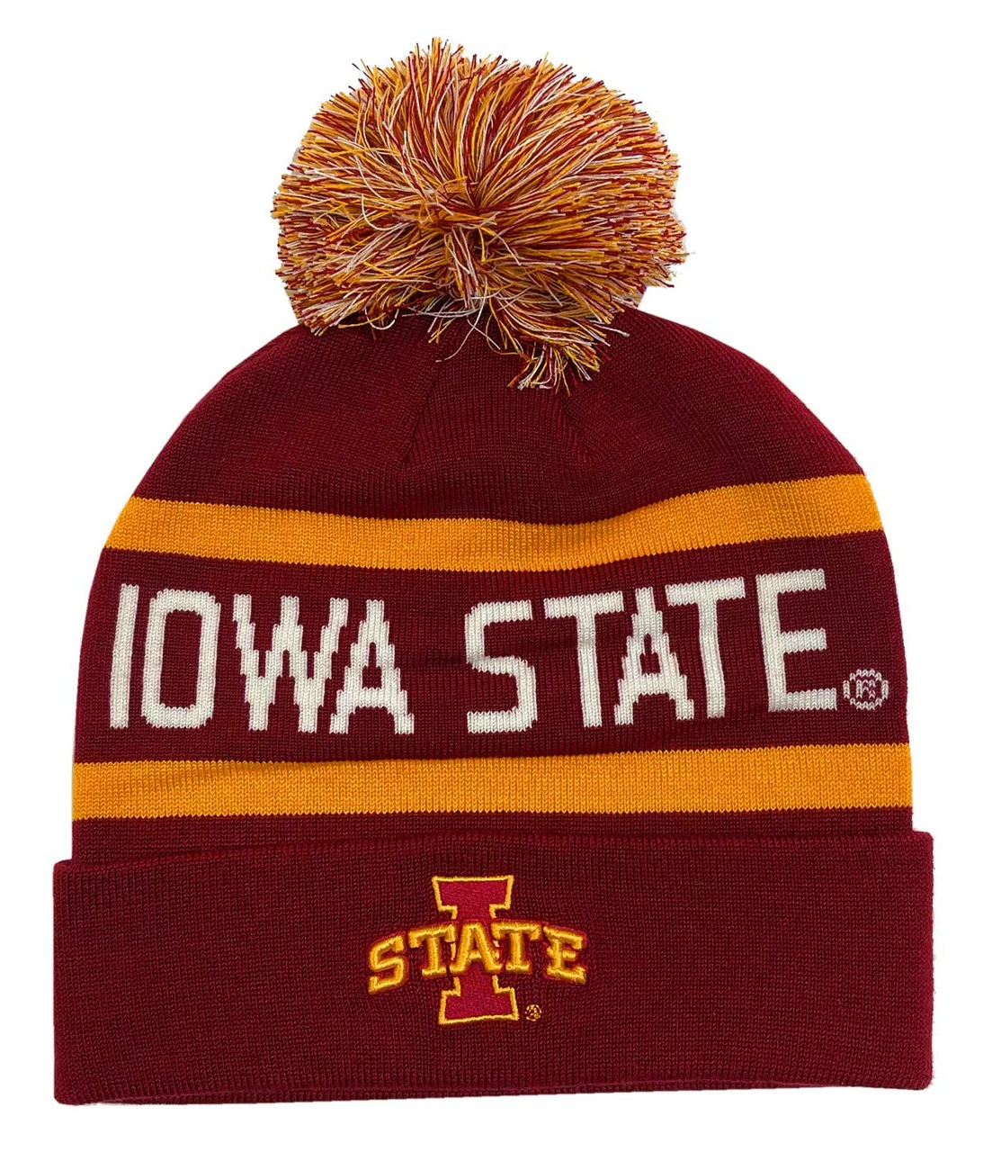 The Game Fine Gauge Knit Hat W/ Pom Knit Cap School Colors Iowa State University. Prove your worth as an Iowa State Cyclones fan with this awesome Fine Gauge Knit hat with Pom from The Game! It’s got a roll up cuff and an embroidered school logo graphic on the front. One size fits most!