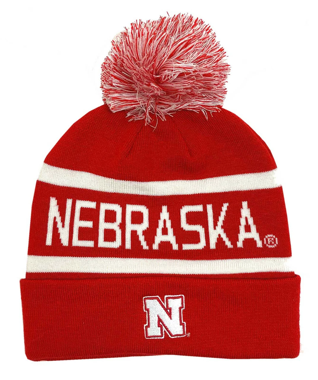 The Game Fine Gauge Knit Hat W/ Pom Knit Cap School Colors University of Nebraska. Prove your worth as a Nebraska Cornhuskers fan with this awesome Fine Gauge Knit hat with Pom from The Game! It’s got a roll up cuff and an embroidered school logo graphic on the front. One size fits most!
