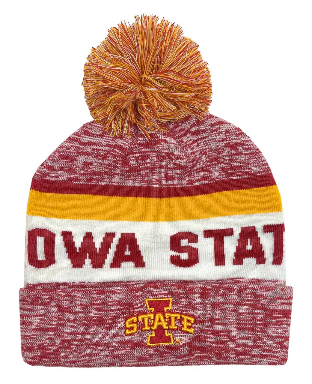 The Game Roll Up Knit Hat W/ Pom Knit Cap School Colors Iowa State University. Prove your worth as an Iowa State Cyclones fan with this awesome Roll Up Knit hat with Pom from The Game! It’s got a roll up cuff and an embroidered school logo graphic on the front, and heathered school colors. One size fits most!