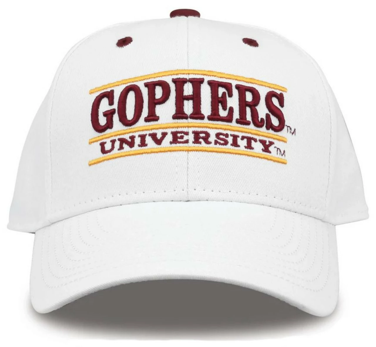 The Game University of Minnesota Golden Gophers Embroidered Bar Adjustable Snapback Cap ? White, G2036-000087. Prove your worth as a University of Minnesota Golden Gophers fan with this awesome snapback adjustable hat from The Game! It’s got 6 total panels with embroidered University graphics and the ?Gophers? team name across the crown. The adjustable snapback closure allows for easy adjustments that ensure the perfect fit every time. G2036-000087