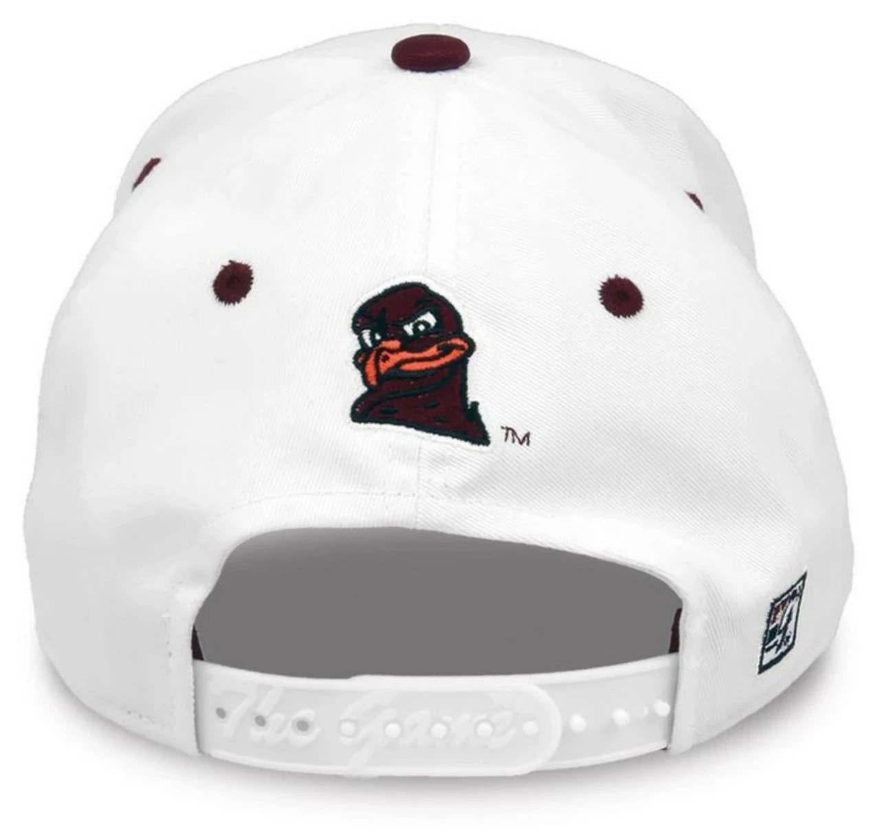 The Game Virginia Tech ‘Hokies’ Bar Adjustable Snapback Style Cap ? White, G2036-000033. Prove your worth as a Virginia Tech Hokies fan with this awesome snapback adjustable hat from The Game! It’s got 6 total panels with embroidered Virginia Tech graphics and the ?Hokies? team name across the crown. The adjustable snapback closure allows for easy adjustments that ensure the perfect fit every time. G2036-000033