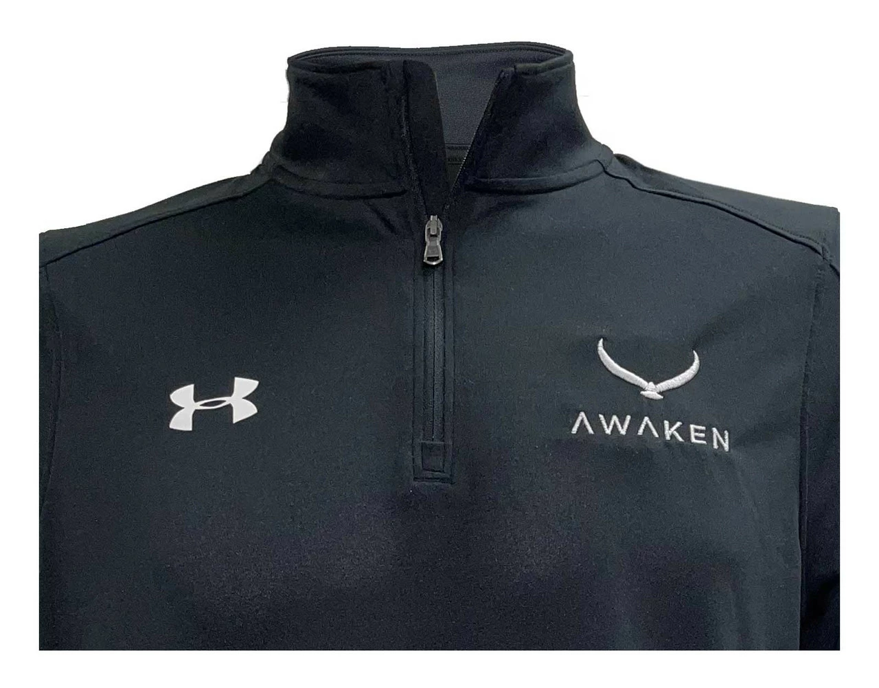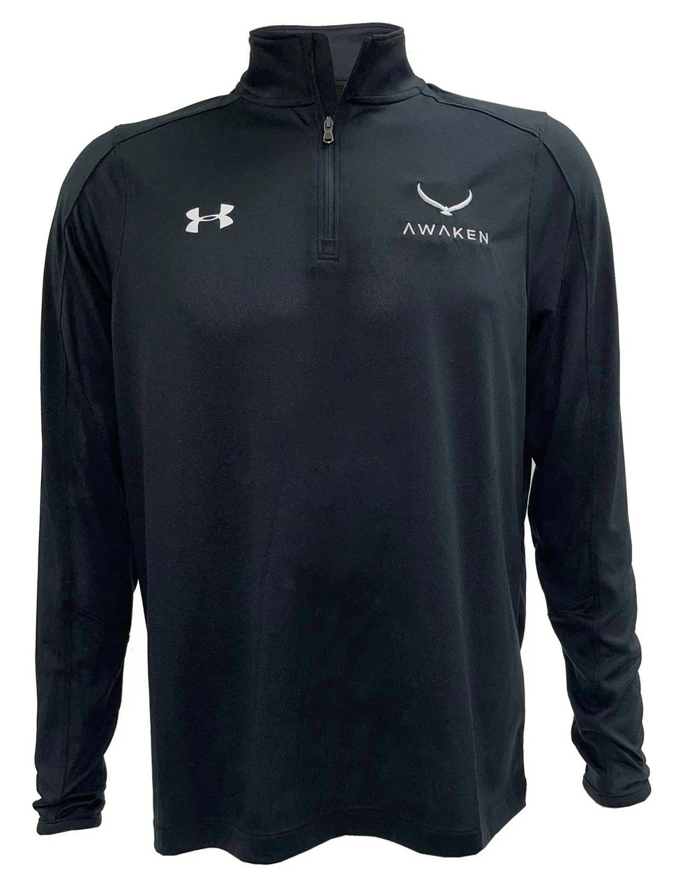 Under Armour Men’s � zip pullover long-sleeve athletic shirt. 100% Polyester. UAAW-1293901-001
