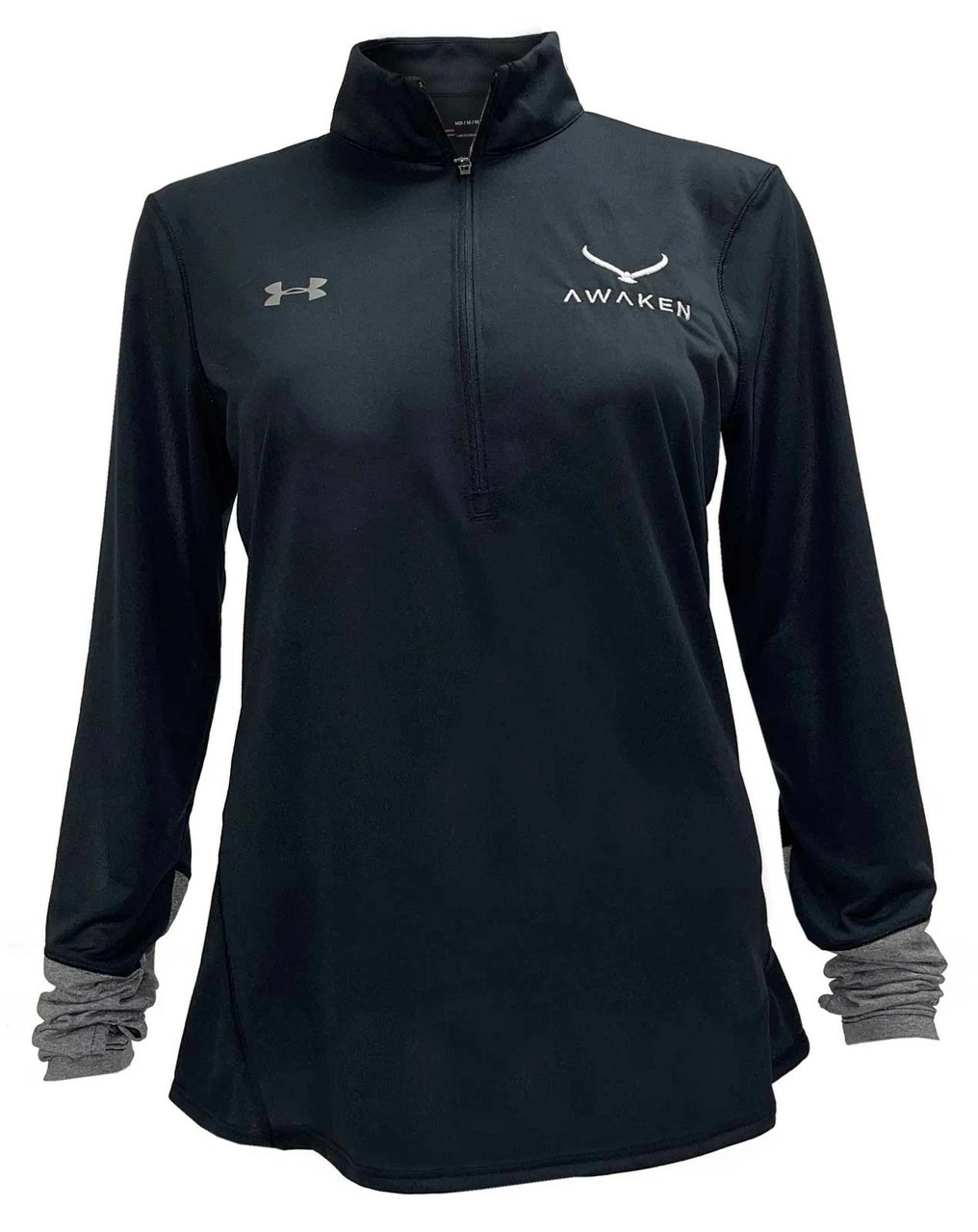 Under Armour Women’s Awaken Soaring Eagle Long-sleeve � Zip Shirt. Small Awaken and Under Armour logo on the chest. Made of 100% Polyester. UAAW-1309958-001-S