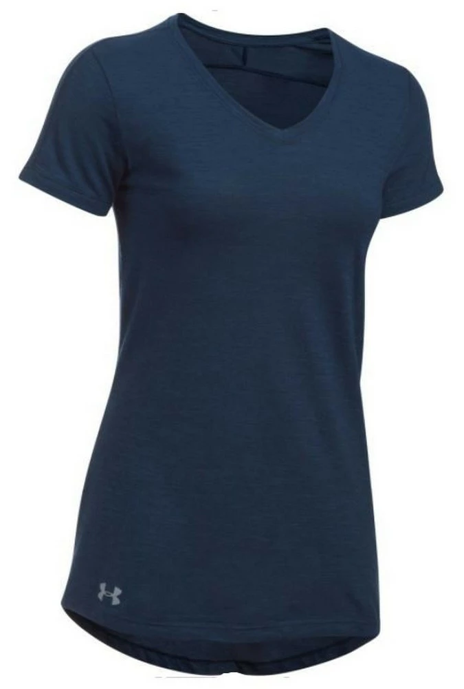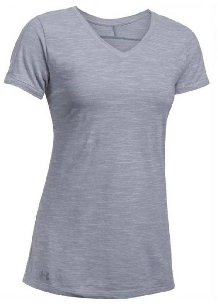 Women’s flattering V-neck tee from Under Armour. The perfect combination of cotton, polyester, and rayon gives this tri-blend tee an amazing softness and feel. Add your logo for a custom screen printed Under Armour Women’s tee. Material: 75% Cotton, 15% Rayon, 10% Polyester. 1295304