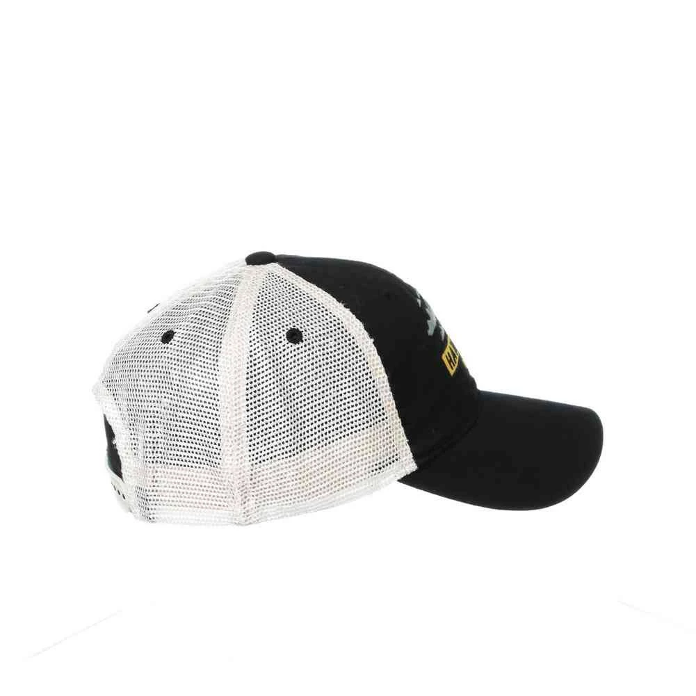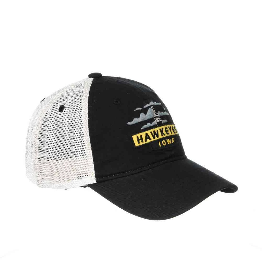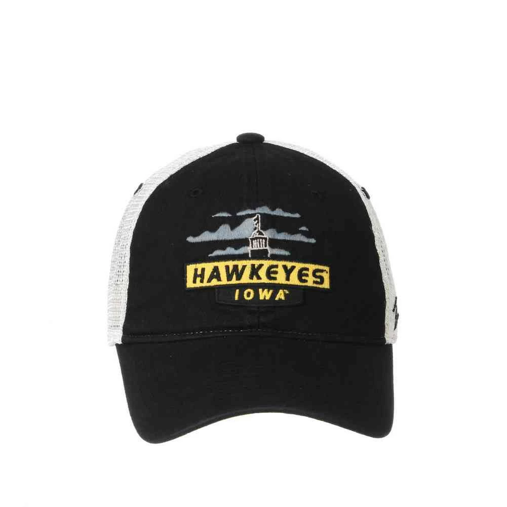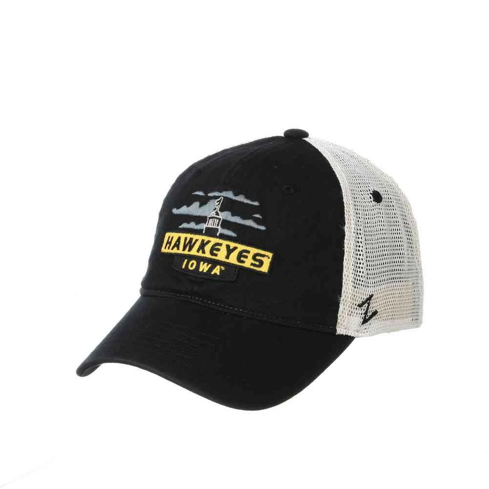 Show your support for your college team, University of Iowa with this mesh back cap design. This Cotton/Poly Blend adjustable cap with adjustable snap closure by Zephyr. Zephyr Headwear was established in 1993 by former sports retailers who weren’t satisfied with the hats they had to sell in their stores. Zephyr initially focused on improving college hats and quickly became a major hat company by innovating many of the styles and treatments that are common in headwear today. Know as “Z Hats” because of the embroidered “Z” on left side. Zephyr insists on the highest quality materials and innovative design to stand a hat above the rest! Officially Licensed. Color: Black/Gold/Gray. IOWKNX001001