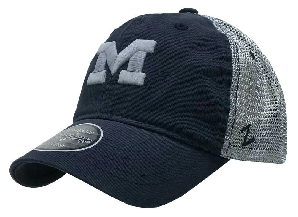 Show your support for your college team, University of Michigan with this Nimbus new two-tone cap design. This Cotton/Poly Blend adjustable cap with a mesh back and snapback closure by Zephyr. Zephyr Headwear was established in 1993 by former sports retailers who weren’t satisfied with the hats they had to sell in their stores. Zephyr initially focused on improving college hats and quickly became a major hat company by innovating many of the styles and treatments that are common in headwear today. Know as “Z Hats” because of the embroidered “Z” on left side. Zephyr insists on the highest quality materials and innovative design to stand a hat above the rest! Officially Licensed. Color: Black/Gray. MICNIM0010